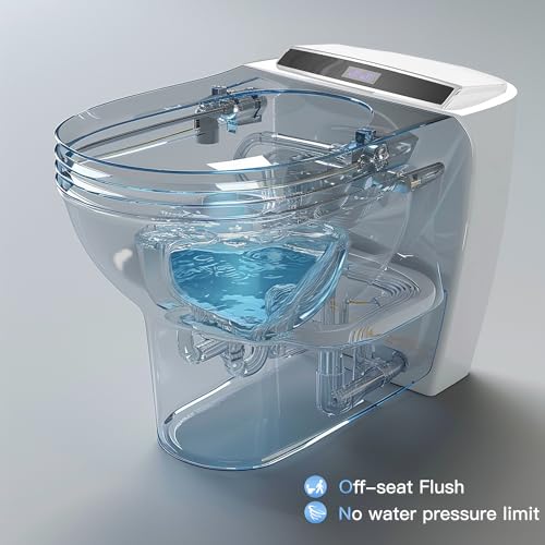 Hand-Free Intelligent Flushing: This smart toilet features foot flushing, off-seat flushing, and power outage flushing, helping free your hands even when power off at home. With a nightlight, LED display, and remote control, this bidet toilet is perfect for users of all ages.(Note: The remote control does not support the function of opening the cover remotely.)