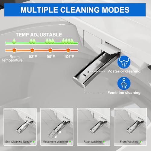 [Instant Warm Water & Tankless Design]Enjoy unlimited comfort with tankless instant heating. Unlike reservoir tanks, this bidet toilet combo provides continuous fresh warm water. The sleek tankless design saves space, ensures fresh water usage, and offers a fully customizable warm wash.