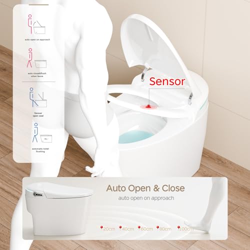 3 CONTROL OPTIONS & 4 FLUSHING MODES: Voice, button, and remote controls offer ultimate convenience. Automatic flushing when you stand up, plus button, remote, and foot control options. This modern smart toilet provide hands-free operation. The four flushing modes—off-seat auto flush, button, remote, and foot kick flush—ensure flexibility and ease of use.