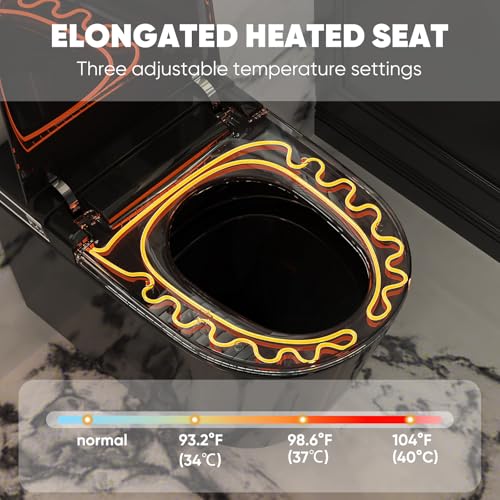 [ Heated Seats ] : The elongated heating seat with 4 adjustable temperature settings, which can adjust the temperature according to needs. It ensures a warm, comfortable experience on chilly days.
