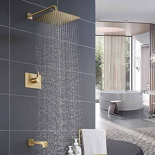 ?????COMPLETE KIT? : Including 12 inch square rain shower head?304 stainless steel?,16 inches shower arm?304 stainless steel?,shower mixer control valve?Brass?,tub spout?304 stainless steel?shower arm,tub spout and shower mixer valve are 1/2" NPT threaded. Standard U.S. connection size, ensuring easy and fast installation.