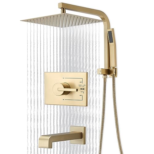 ?EASY OPERATION?: With single handle for three functional and temperature control. Close the handle to the right, rotate the handle until the water get out. When turn the handle up, water will get out from rain shower head or handheld shower head.when turn the handle down,water will get out from tub spout. the further to the left, the hotter it will be.