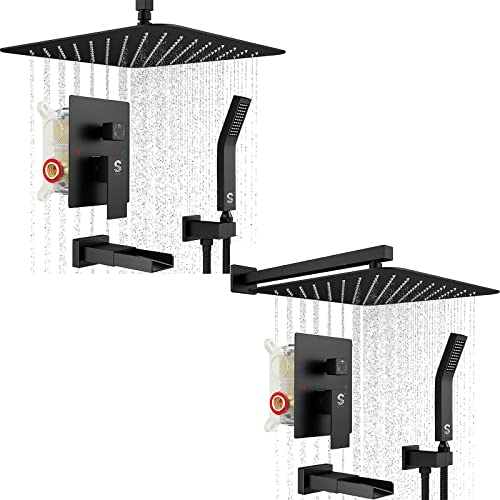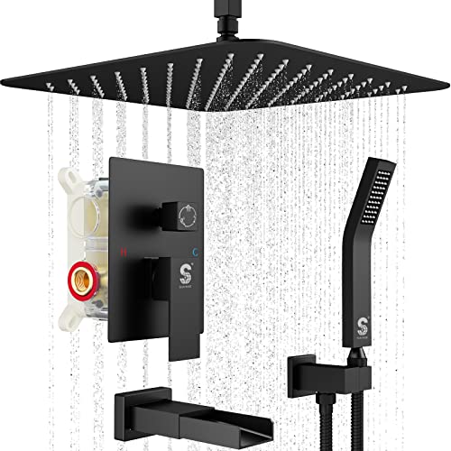 Excellent Temperature Control: This matte black shower tub and faucets sets complete come with a shower valve, which is able to ensure that there's an even water flow and the right temperature. You can calmly continue singing in the shower ? without the risk of being burned or getting a cold shock.