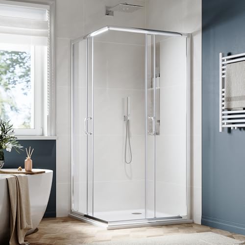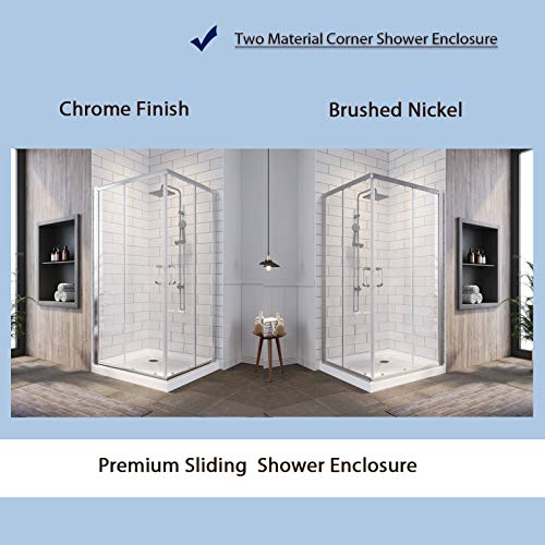 DOUBLE SLIDING DOOR DESIGN – Corner shower enclosure with 2 sliding glass panels, spacious shower space makes you enjoy showering