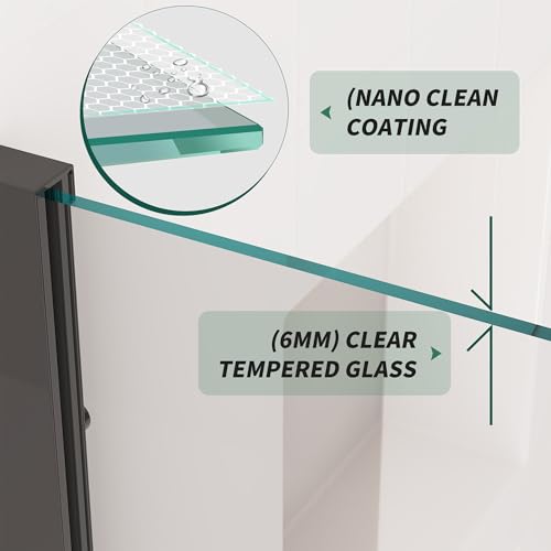 [Safety Tempered Glass]: The glass shower door is constructed with 1/4"(6mm) ANSI certified clear tempered glass, easy to clean.