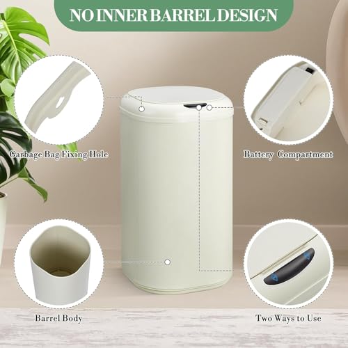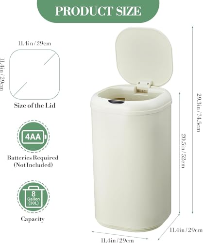 Spacious and Elegant Design: Measuring 11.4 x 11.4 x 20.5 inches, this touchless bin offers a generous 8-gallon capacity while saving space. Its modern beige finish and cylindrical shape add a stylish touch to any room. Benefit: Enjoy the perfect combination of functionality and aesthetics, making it a great addition to your kitchen, bathroom, or office.