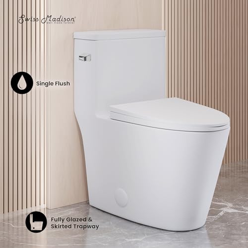 Swiss Madison Dreux One Piece Toilet, Modern Toilets For Bathrooms, ADA Toilet, Elongated Left Side Flush 1.28 GPF, Glossy White