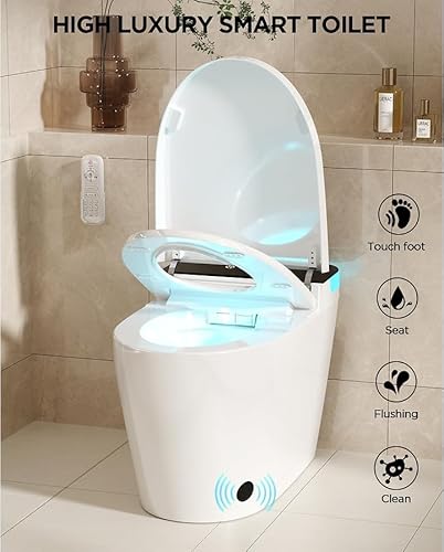 Remote Control & Emergency : The smart toilet comes with a remote control, allowing you to effortlessly adjust multiple cleaning and self-cleaning modes. Enjoy a comfortable cleansing experience,. It is equipped with an advanced emergency flush system for power outages, ensuring your experience remains uninterrupted and bathroom hygienic