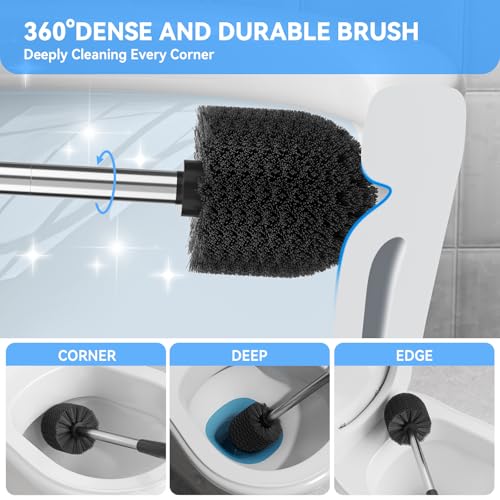 DEEP CLEANING BRISTLES: Made from tightly packed PP fibers with a stiff and hardy density but adaptable flexibility, nylon bristles tackle gunk and grime without scratching up the porcelain of your toilet bowl. The 360°shape of the brush’s ergonomic scrubbing head ensures the bristles can clean even the deepest under-rim area and hardest to reach corners.