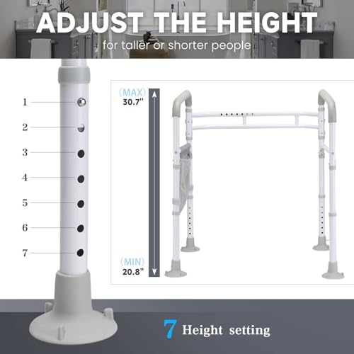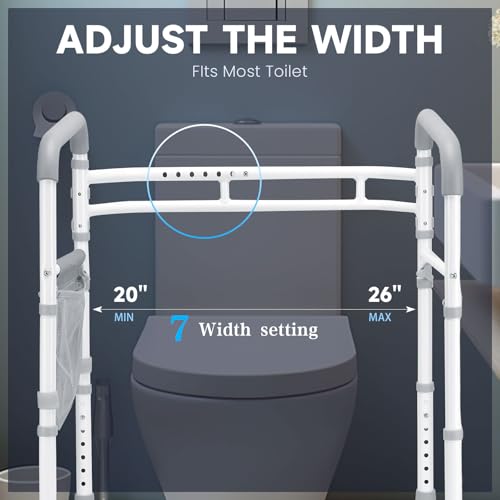 Adjustable Height & Width: Designed for a personalized fit, our toilet safety frame features adjustable height and width. The height can be adjusted between 20 and 30 inches, allowing users to customize it according to their height. The width can be adjusted from 20 to 26 inches, making it compatible with all types of toilets.
