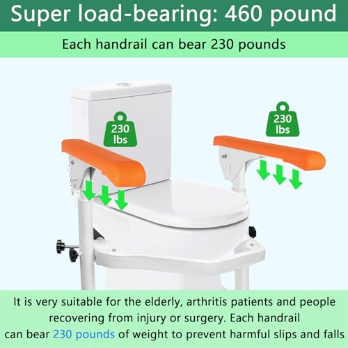 [Stable] Toilet rails for elderly adults safety can hold up to 520 pounds, Toilet safety rails for seniors are great for seniors, arthritis sufferers, injured or recovering from surgery.Toilet hand rails provide extra stability for them to prevent harmful slips and falls, giving users peace of mind when using Toilet hand rails,Toilet rails for seniors,Toilet handicap rails with arms,Extra wide toilet safety rails