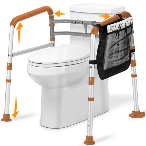 Unwavering Support for Everyday Confidence: Our toilet safety rails feature strong, reliable grab bars strategically positioned to assist and support you when sitting down and rising from the toilet. This toilet safety frame boast a unique, tapered design for enhanced structural stability. This, combined with 25% thicker aluminum tubing, 40% larger anti-slip feet, and 300% stronger plastic fitments, creates an stable support system you can rely on for years to come.