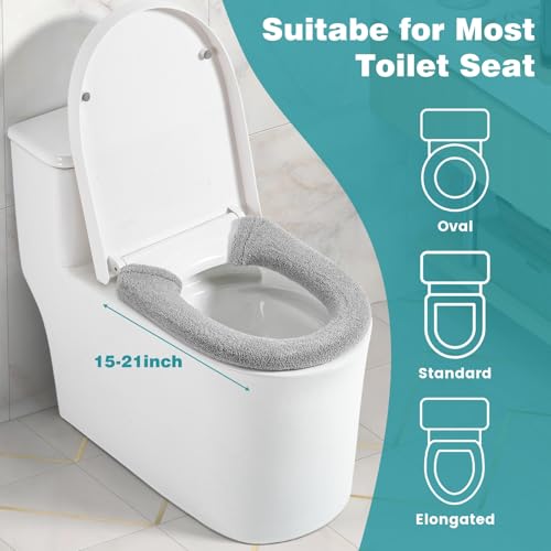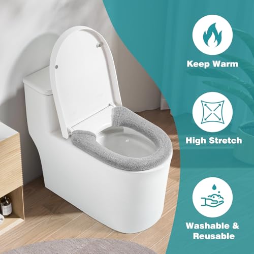 Flexible Fit: Made of 10% spandex and 90% soft acrylic, this toilet seat covers for bathroom is highly stretchable, offering extra cushioning and fitting most standard, oval, and elongated toilet seats.