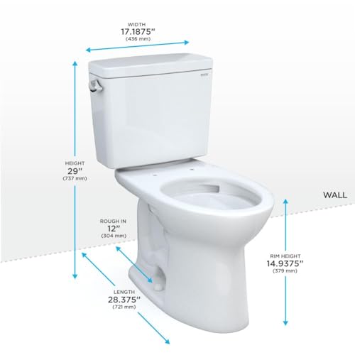 ? STYLISH AND MODERN DESIGN - Update your oasis with this stylish design that couples well with any bathroom décor. The elongated bowl provides added space for comfort. The toilet fits into 12 inch rough-in installations and has a left-hand trip lever.