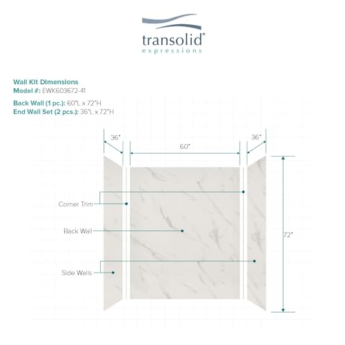 Transolid EWK603672-41 Expressions 3-Panel Shower Wall Kit, 36-in L x 60-in W x 72-in H, Bianca