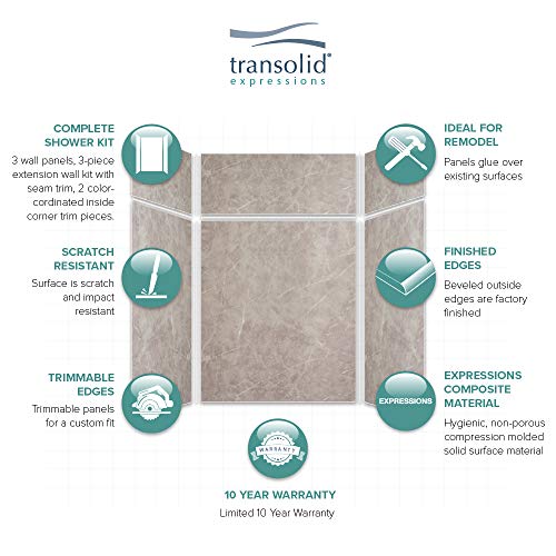 Transolid EWKX606096-42 Expressions 6-Panel Shower Wall Kit with Extension, 60-in L x 60-in W x 96-in H, Dover Stone