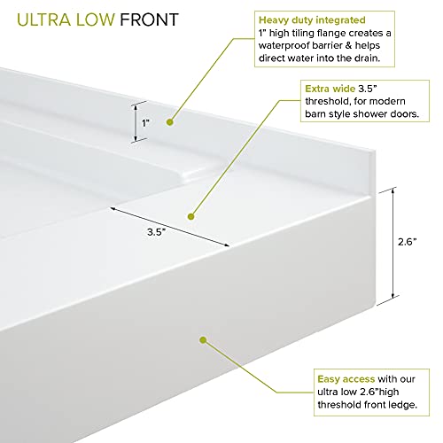 INTEGRAL TILING FLANGE: A substantial 1 in. tiling flange ensures no water will sneak in the cracks between your shower base and walls