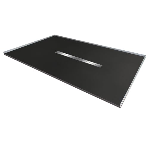 DRAIN: center drain location with modern rectangular stainless steel drain cover that conceals a conventional 2-in shower drain, creating a pleasing uniform and minimalist design; drain not included