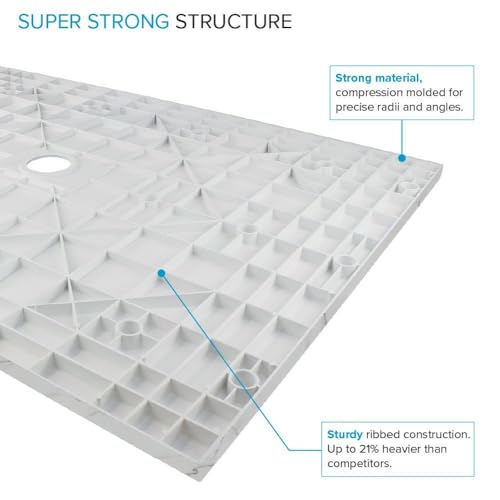TRIMMABLE: trim up to 4-in in width away from side opposite drain or up to 2-in in depth away from drain without any loss of integrity