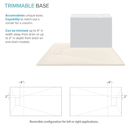TRIMMABLE: trim up to 4-in in width away from side opposite drain or up to 2-in in depth away from drain without any loss of integrity