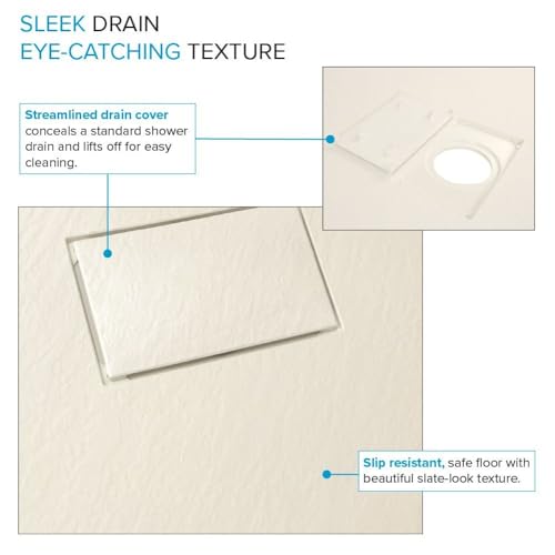 REVERSIBLE DRAIN: end drain location with SMC color-matched drain cover that conceals a conventional 2-in shower drain, creating a pleasing uniform and minimalist design; drain not included
