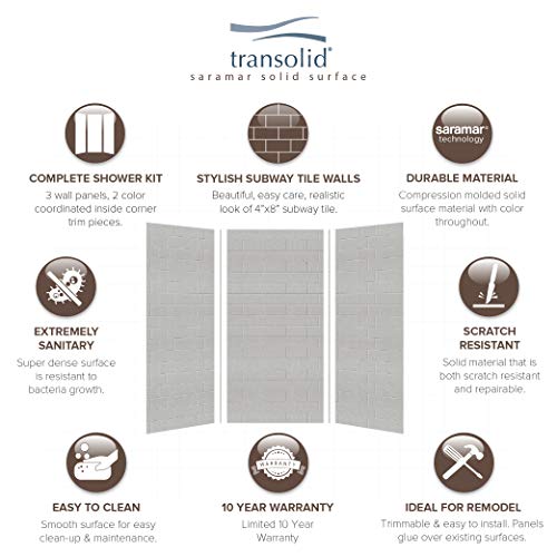 COMPLETE KIT: Kits include three 84-in wall panels, three 12-in extension panels, two color coordinated inside corner trim pieces, and pencil seam trim