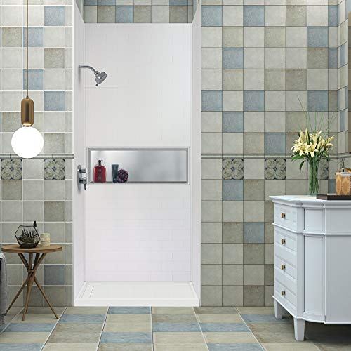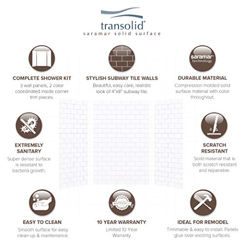 COMPLETE KIT: Kits include three 84-in wall panels, three 12-in extension panels, two color coordinated inside corner trim pieces, and pencil seam trim