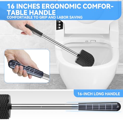 ERGONOMIC COMFORT HANDLE: A ergonomic toilet brush handle makes the toilet cleaning brush easy to grip & clean with without splash back. Super comfortable to hold, the extended handle has a non-slip grip.