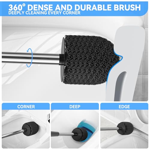EFFICIENT CLEANING BRUSH: The toilet brush holder set comes with traditional dense bristles that can efficiently clean the old stubborn stains, and it can also clean the dead corners of the toilet edge effortlessly, protect your toilet bowl from scratching and keep your toilet bowl clean.