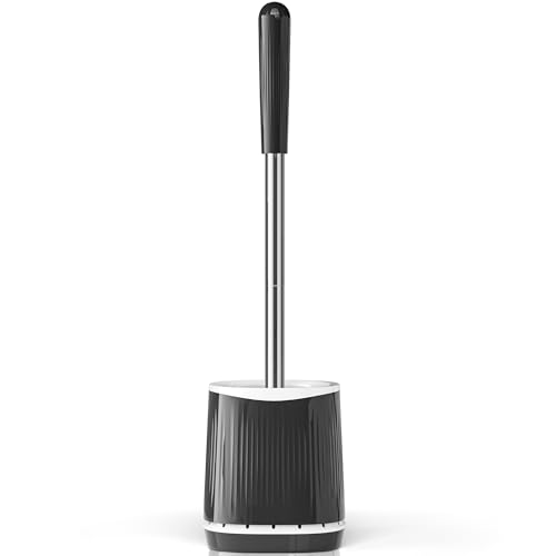 TRENTI Toilet Brush, Toilet Brush and Holder Set, Bristles Toilet Bowl Brush Head with Ventilated Holder, Wall Mounted Compact Toilet Brush Set for Bathroom Deep Cleaning (1, Black)
