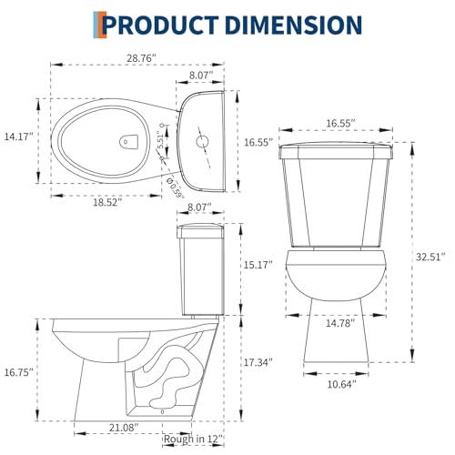 Water-Efficient Design: Toilet is engineered to be water-efficient without sacrificing performance. Its advanced flush technology uses a minimal amount of water per flush, 1.28 gallons, helping you conserve water while maintaining excellent flushing power.