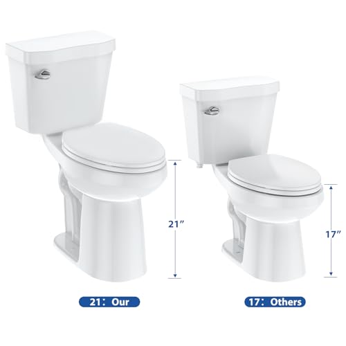 Ergonomic Elevated Seating: 21" seat height reduces strain on knees and hips, offering a comfortable midpoint between standard and chair-height toilets. Ideal for taller individuals or those preferring an easier transition from standing, it promotes natural posture alignment.