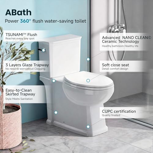 Nano Self-clean Glaze: The toilet bowl features a high-temp glaze and nano self-cleaning coating to reduce stains by 200%. The 360-degree glazed trapway ensures smooth waste removal with no clogs
