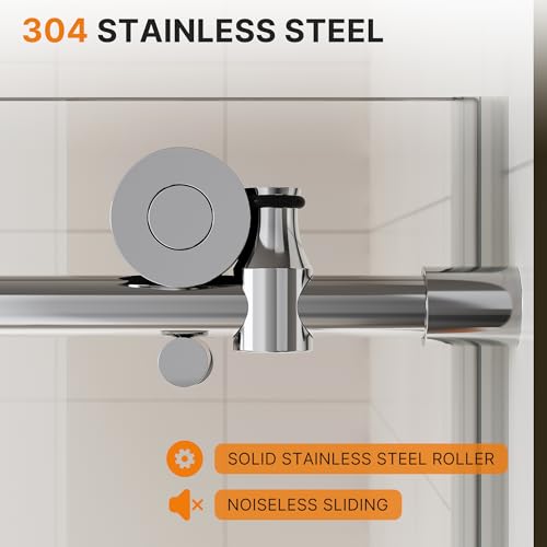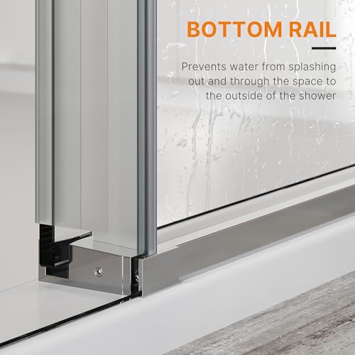 Effective Water Leak Protection: The 60 inch sliding shower door features a multiple leak-proof design, including an splash-proof threshold and full-length water seal strips with an extended side, ensuring a good sealing effect to effectively keep water splashing or overflowing, allowing you to enjoy your shower without worries