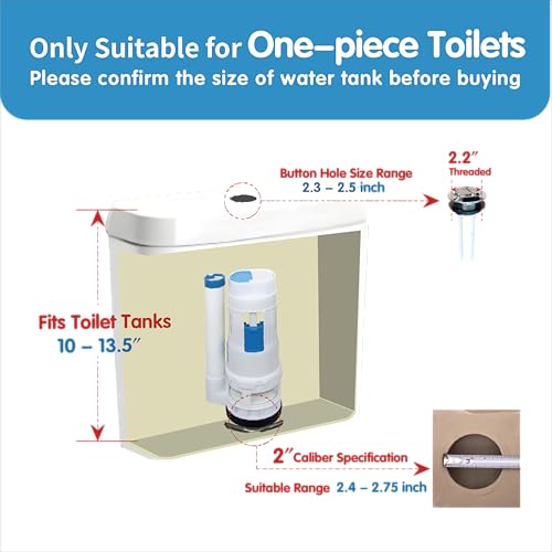 Dual Flush Toilet Kit - Easy Installation: This toilet repair kit is designed for different types of one-piece dual flush toilets. The flush valve can be installed using just a screwdriver, and the rest of the components don't require any tools. The water level can be adjusted, Fits Toilet Tanks 10 To 13-Inch High