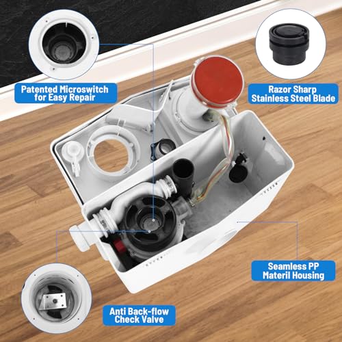 SHARP STAINLESS STEEL BLADE-- For keeping your toilet from blocking, the macerating pump is equipped with stainless steel non-clog impeller blades to ensure a smooth water flow. The sharp blade and copper wire motor will extend the serviceable life for less blocking by waste cutting.