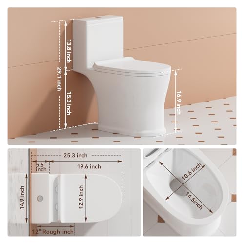ERGONOMIC DESIGN TOILET -- Engineered for daily convenience and accessibility, this toilet features a dual-flush mechanism (1.1/1.6 GPF) for effective water conservation. The U-shaped elongated bowl provides enhanced hygiene and comfort, while the 17.3-inch ADA-compliant height offers a more natural and accessible seating position, making it easier for users of all ages and mobility levels to use comfortably.