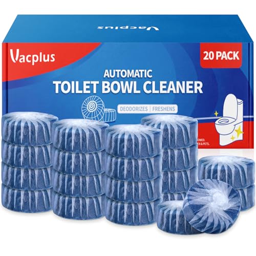 LONG-LASTING EFFECT: With the sustained-release technology, each Vacplus splash toilet cleaner can continuously clean the toilet for up to 15 days with 20 flushes a day. With 20 packs for replacement, Vacplus toilet cleaner tablets can keep the toilet bowl clean and fresh for over 10 months. Additionally, the lifetime of each toilet tablet may vary with the frequency of flushes.