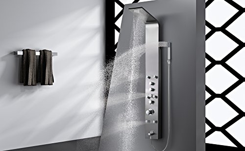 SUS 304 STAINLESS STEEL ---Shower Panel Brushed Nickel|Elegant and avant-garde curved design|Easy to clean.