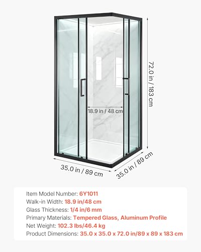 Space-Saving Corner Design: This corner shower enclosure measures 35.0 x 35.0 x 72.0 in, with an 18.9 in walk-in width. The diagonal sliding door glides smoothly without swing space, and the square layout fits any bathroom corner to maximize space
