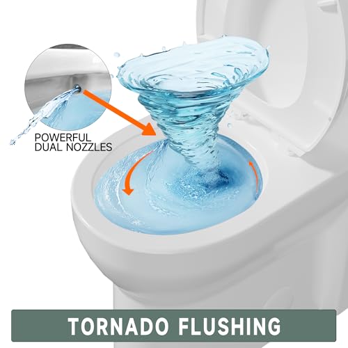 ?Easy to Clean and Maintain?The one piece skirt toilet is seamlessly integrated with no gaps between the tank and base, to minimize hygiene dead spots and prevent dirt buildup. The smooth glaze resists staining, while the powerful tornado flush helps prevent clogs, making daily cleaning simple and convenient for a hassle-free toilet experience.