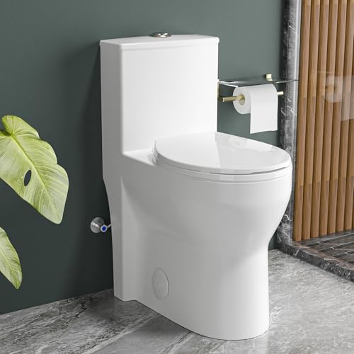 ?Compact Modern Toilet 19 Inch for Bathroom, 12 Inch Rough-in?The one-piece toilet seamlessly integrates the water tank and toilet, which making ADA toilets easier to clean and eliminating the problem of water tank leakage.