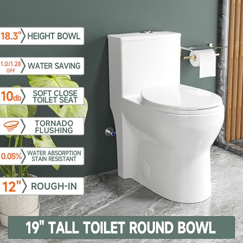 ?High-Temperature Fired, Stain-resistant?Crafted from porcelain materials and fired at over 1280°C, the one-piece tall toilet 19 inch features dense, durable porcelain with a crack-resistant, stain-resistant,low-water-absorption glaze. It ensures long-term use without discoloration or deformation.