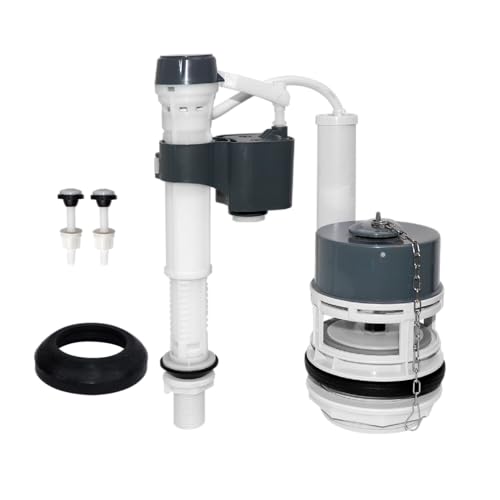 All-in-One Internal toilet replacement kit: Contains all key components for a full rebuild: an adjustable height fill valve and a 3-inch Flush Valve Replacement with chain, with 2 mounting bolts and all necessary sealing gaskets