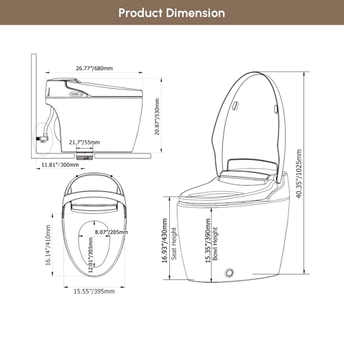 Air purifying system: Multi-functional remote control included. Auto open/close toilet seat. Manual flush as back-up. Requires power outlet.