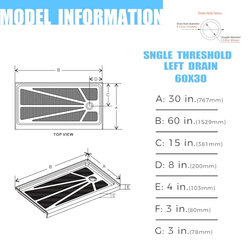 Non-Slip: The shower pan 60x30 right drain comes with textured floor surface and provides a good slip-resistance