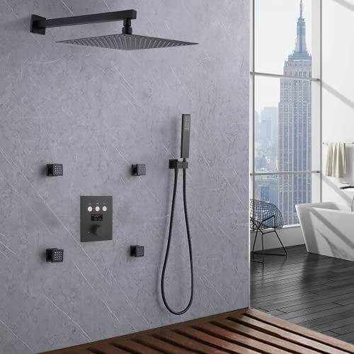 All Functions Can Work At The Same Time - Luxury Shower System with personalized push button design, each option is controlled separately. Users can enable 3 functions: rainfall shower head, shower body jets and shower handheld spray simultaneously or independently in their preferred shower scenario.