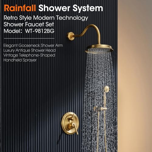 ?Classic Design, Decor for Your Bathroom? A vintage style meets a modern shower system, satisfying your pursuit of traditional retro aesthetics while offering a multifunctional modern shower experience. I believe this rain shower system will be a classic feature in your bathroom. (Flow rate: 3.69 GPM, 13.98 L/min at 60 PSI)