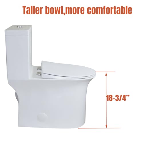 ?[Comfortable Tall and Elongated Bowl ]: The elongated toilet bowl with raised height 18.75" seat height ADA compliant that makes sitting down and standing up easier for most adults,special for taller person and elderly or disable person.Toilet seat designed with quick Release and soft closing, easier to install,remove,maintain.