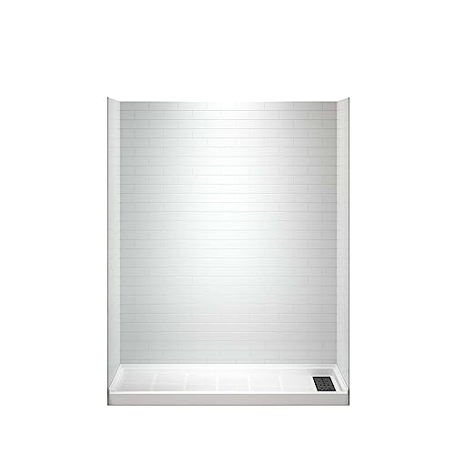 ? [COMBO KIT INCLUDES]: Kit includes a piece of 60 in. x 75 in. back wall panel, two pieces of 32 in. x 75 in. side panels, and a piece of 60 in. x 32 in. Single Threshold Shower Base in White features a Right drain, Matte Black Drain Cover